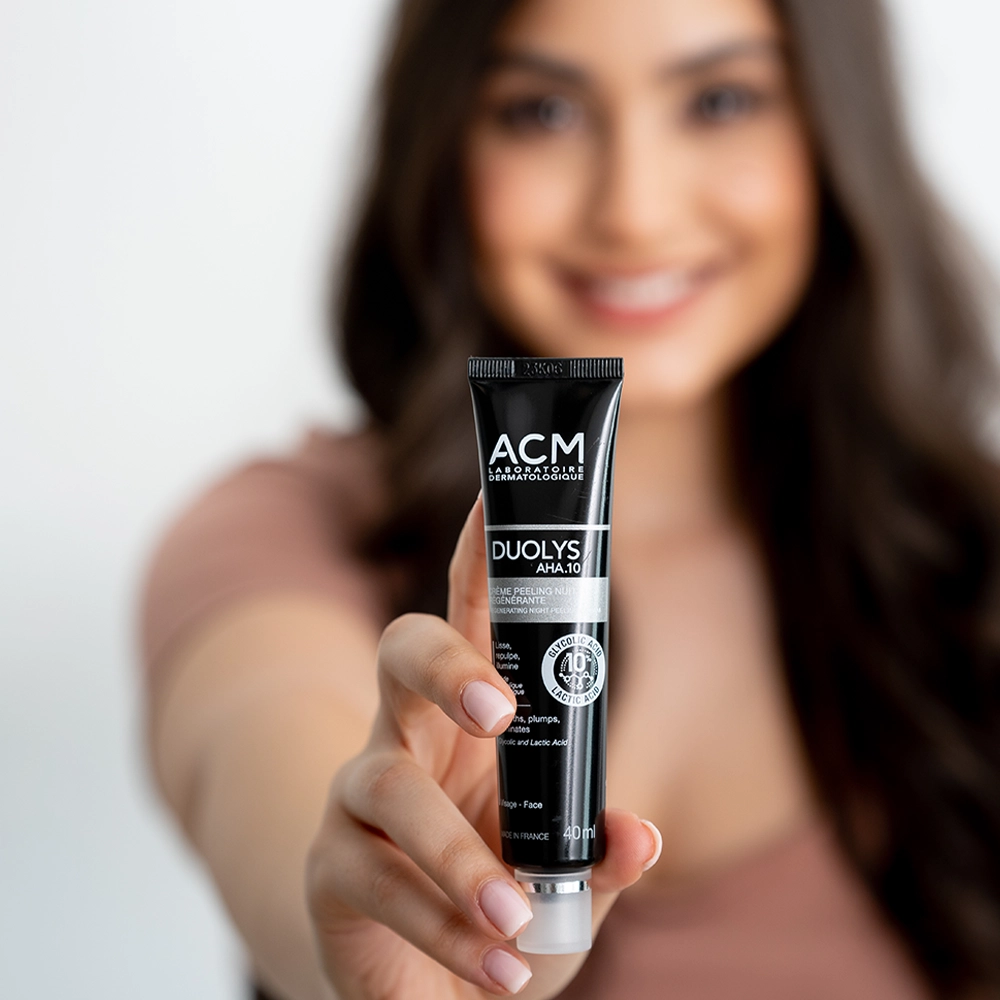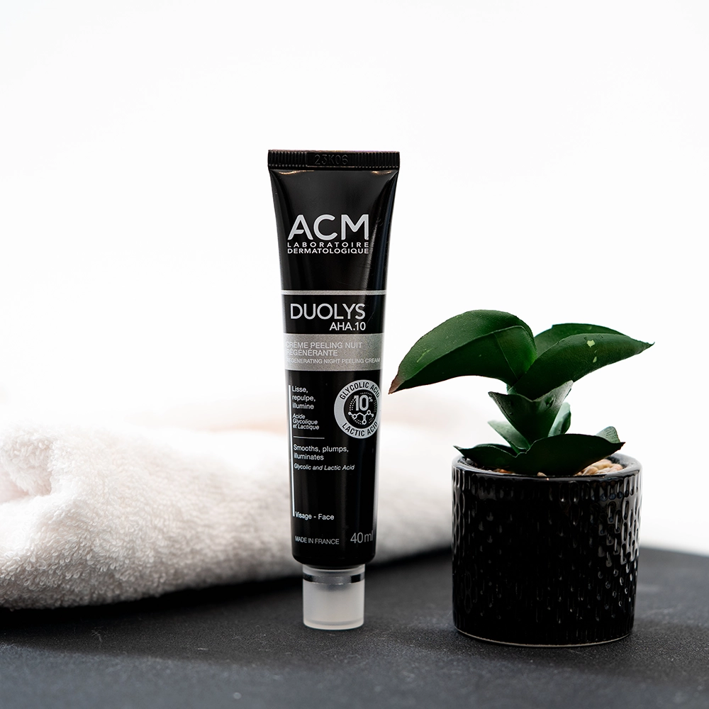 Formulată cu 10% AHA (acid glicolic și acid lactic), crema peeling regeneratoare de noapte DUOLYS exfoliază delicat pentru a îndepărta celulele moarte, curăță pielea și stimulează reînnoirea naturală a celulelor pielii.